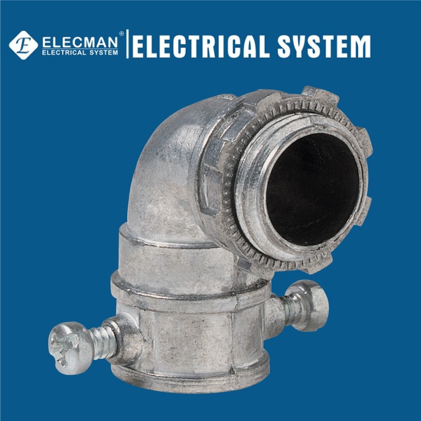 ELECMAN proporciona el conducto del mismo tamaño del cinc EMT para encajonar los conectores del tornillo de presión de 90 grados a partir de la 1/2” a 1".